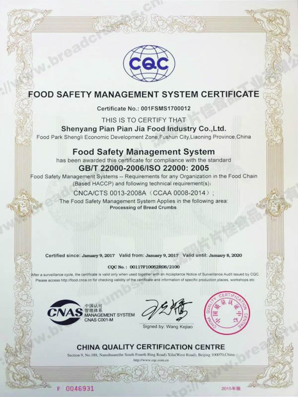 遼寧宜佳食品有限公司(原沈陽片片佳食品工業有限公司),成立于2012年,占地面積2萬平方米,其中辦公樓面積2千余平,面包糠生產車間6千平方米,每天可生產面包糠系列產品60噸。正在建設的主食產業化生產車間1萬余平,即將投入使用。公司位于撫順勝利經濟開發區,毗鄰沈撫新城,是一家專業生產面包糠、底粉、漿粉、炸雞粉…